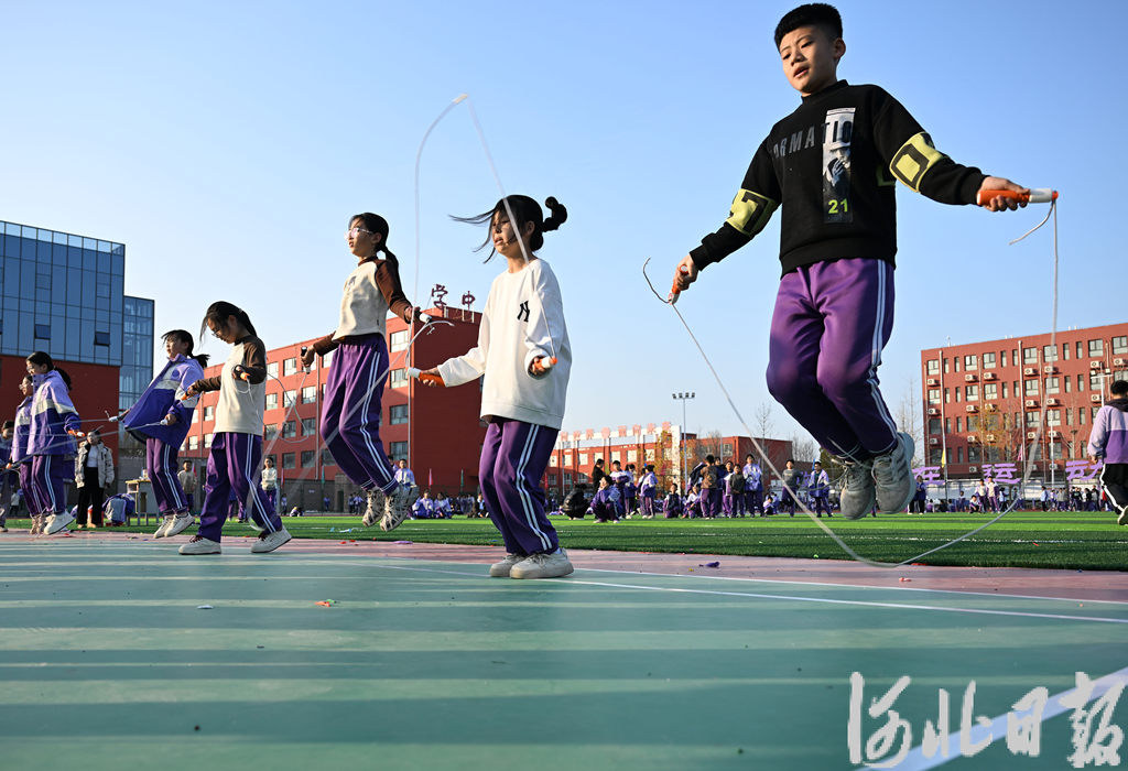 11月20日,宁晋县北新教育集团学生在参加跳绳比赛。