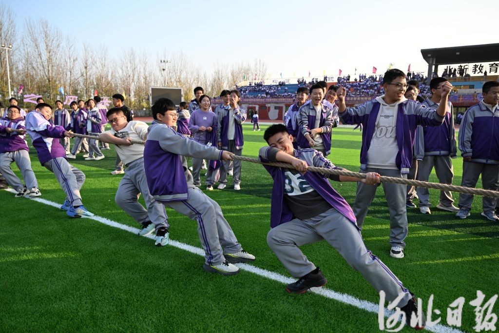 11月20日,宁晋县北新教育集团学生在参加拔河比赛。