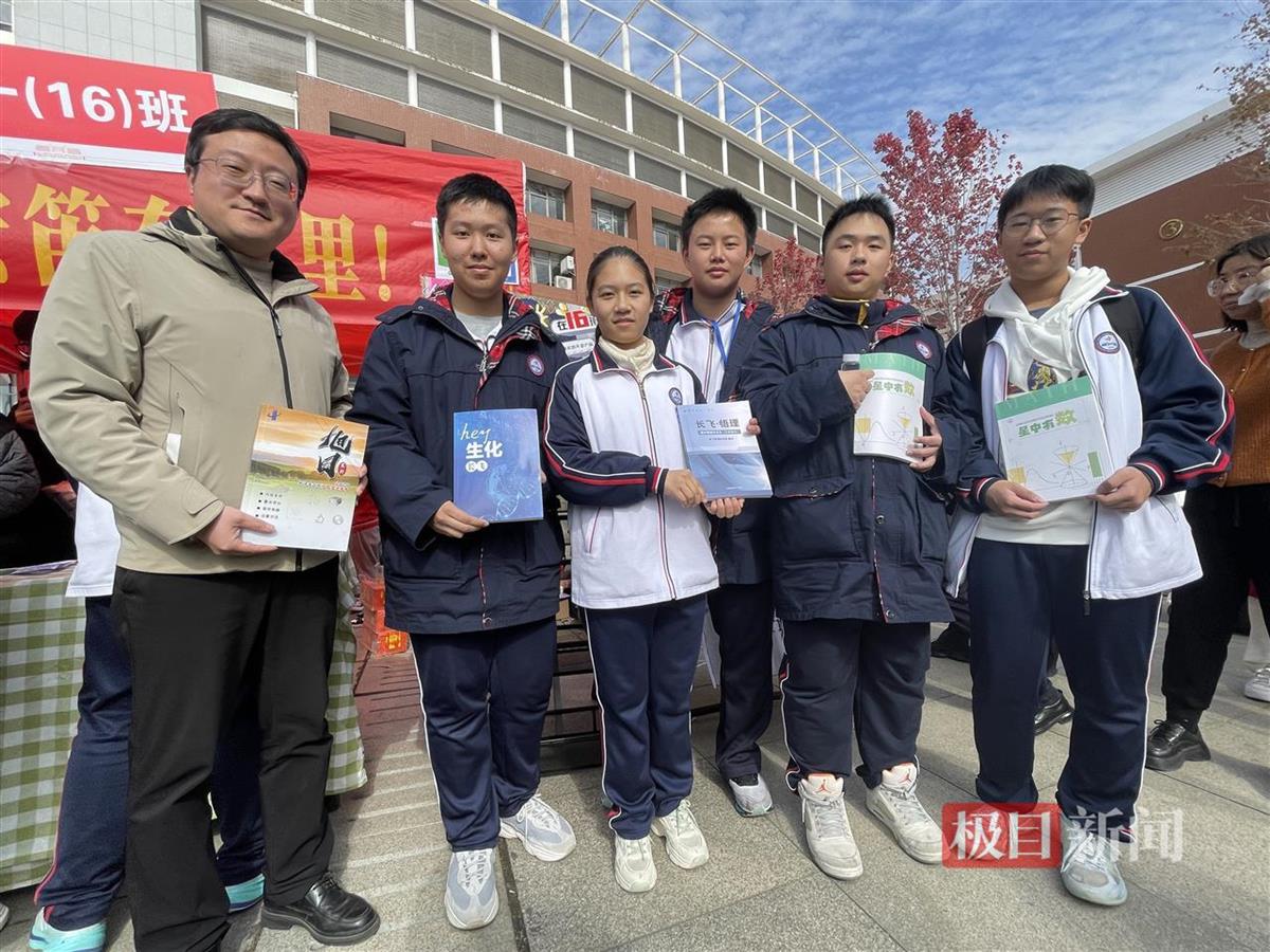 当天,高一(16)班(“长飞班”)成为全场最受瞩目班级——为了“阳光义卖”,他们竟在两星期里编了一套厚书,其中包括三本高中学习辅导书《星中有数》《长飞·悟理》《生化长飞》和一本初中学法指导《旭日东升》,总字数达数十万字。