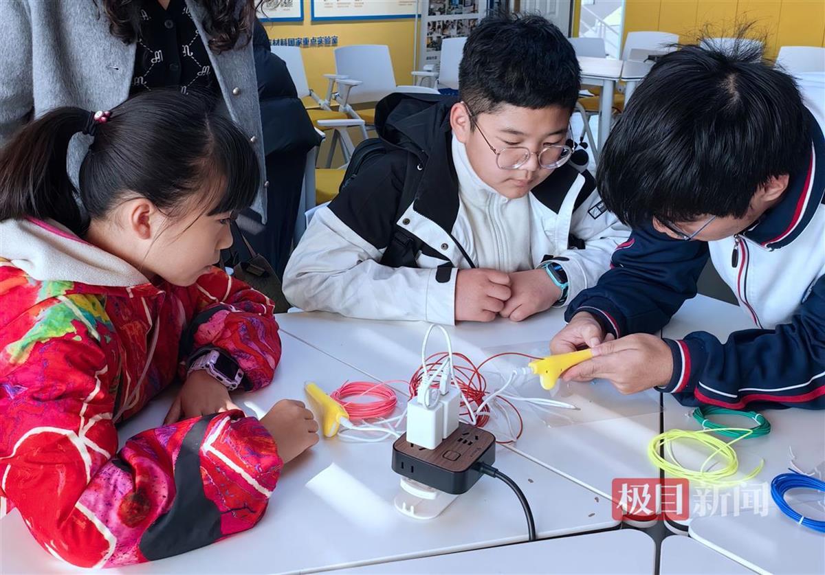 在科技创新课程中心,家长们带着孩子,一同参观体验了这里丰富多彩的前沿科技课程。从《新材料与器件》实验室到《空天探测》实验室,再到《人工智能初步》实验室、《光网络技术与应用》和《AI+机器人》实验室,孩子们玩得不肯离去。其中,体验3D打印笔绘制活动最受欢迎。孩子们将理论知识与创意结合,绘制出各种独具特色的作品。
