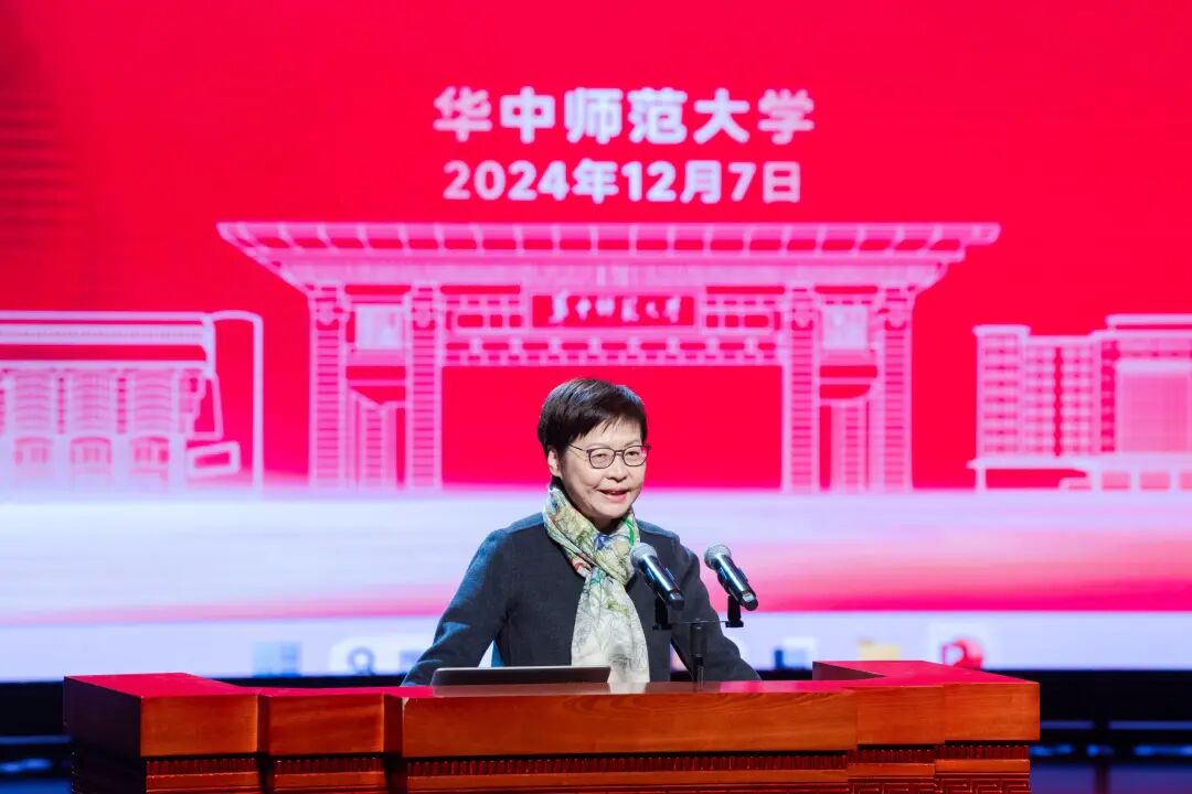 12月7日,香港特别行政区第五任行政长官林郑月娥女士一行到访我校,在大学生活动中心大礼堂作主题演讲,并与师生交流互动。校长彭双阶、校党委副书记查道林、副校长任友洲出席活动。香港浙江省同乡会联合会会长詹洪良,香港湖北社团总会常务副会长兼秘书长许菁,香港湖北社团总会副会长、华中师范大学香港校友会常务副会长吴建芳,湖北省对外友好协会专职副会长司晴川陪同来访。