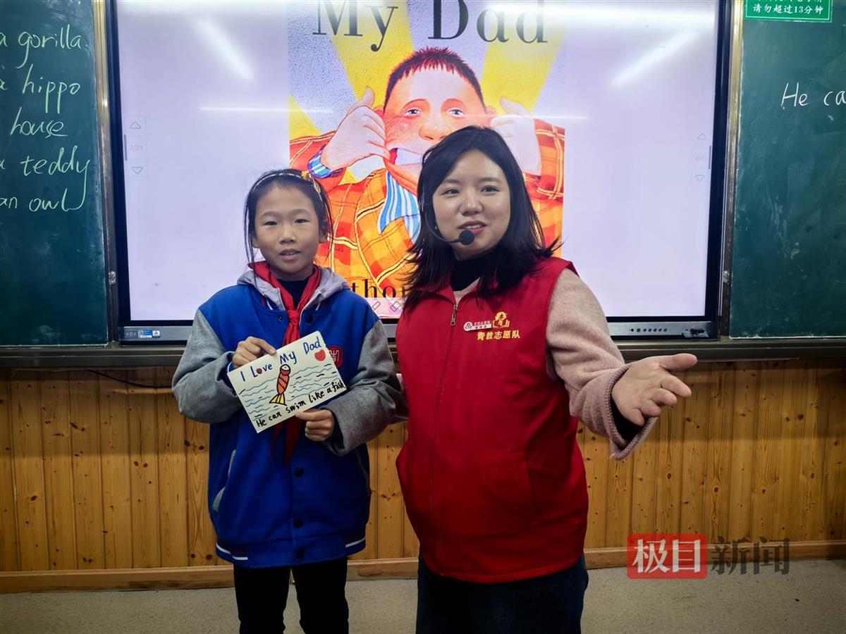 “同学们,读完了充满着趣味和温暖的《My dad》,你是不是也想来画一画,写一写自己的爸爸呢?”在四年级(18)班的教室内,青教志愿队成员、武钢三中十一学校南校区谢晓涵通过一系列有趣的单词游戏和绘本故事,帮助大家在轻松愉快的氛围中学习和巩固了基础英语词汇和句型,同时也从绘本的细腻描绘中感受涓涓父爱。活动中,谢老师还特别设计了英语展示环节,让孩子们亲手画出自己眼中的爸爸形象,并上台用英语表达对爸爸的爱。