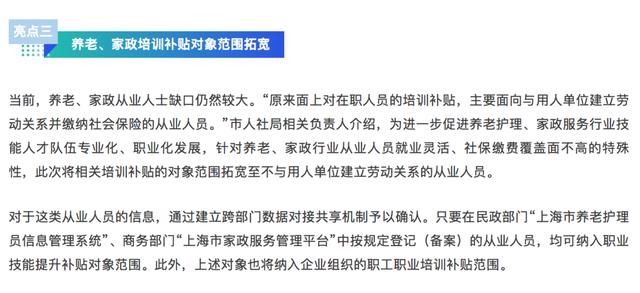 同时,《通知》提到,养老、家政培训补贴对象范围也有所拓宽↓