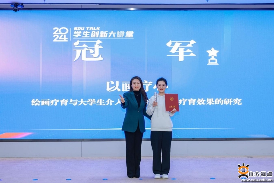 12月12日,山东大学首届“SDU TALK”学生创新大讲堂冠军争夺赛暨成果分享会在中心校区举行。校长李术才出席活动并讲话。经路演及评选,艺术学院(威海)“以画疗心:绘画疗育与大学生介入对孤独症儿童疗育效果的研究”项目获得本科生组冠军。