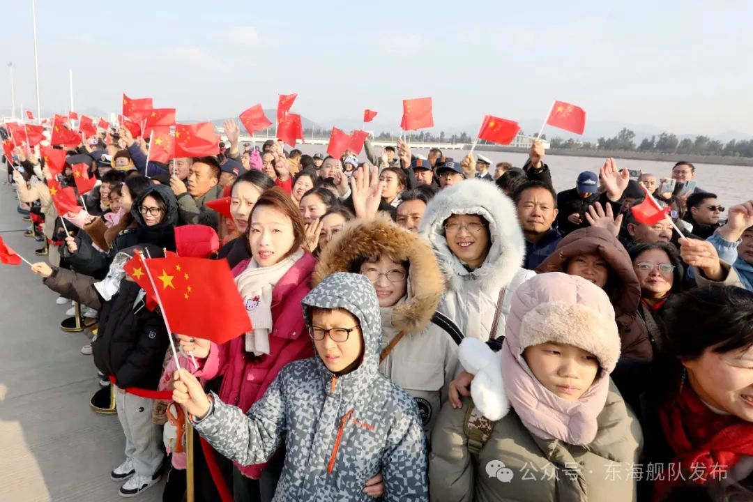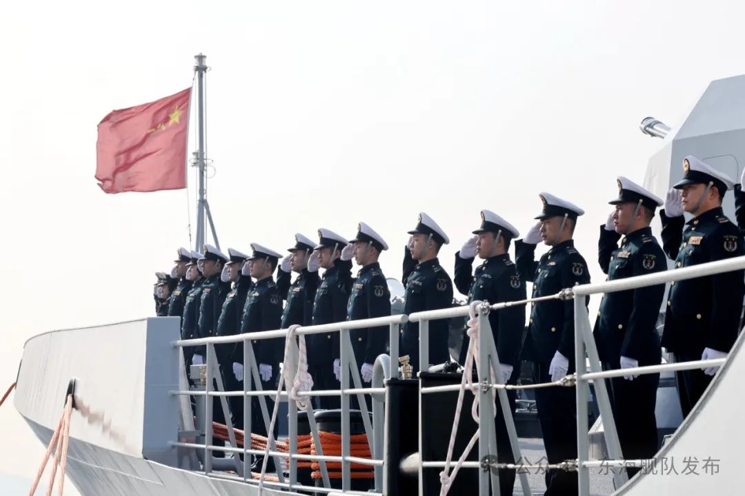 上午9时许,伴随着嘹亮的军乐声,编队舰艇依次解缆缓缓驶离码头。甲板上,任务官兵整齐列队,向祖国和亲人挥手告别。