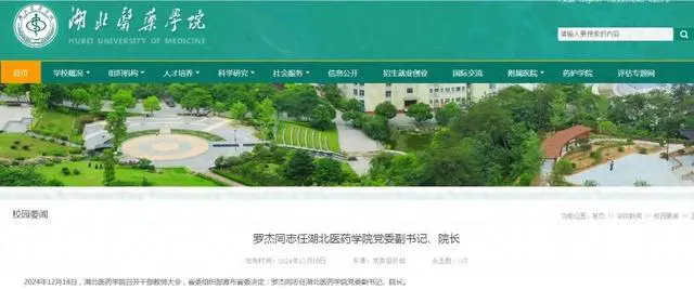 据湖北医药学院官网消息,12月18日,湖北医药学院召开干部教师大会,省委组织部宣布省委决定:罗杰同志任湖北医药学院党委副书记、院长。