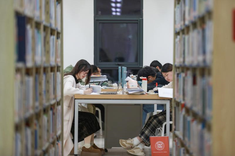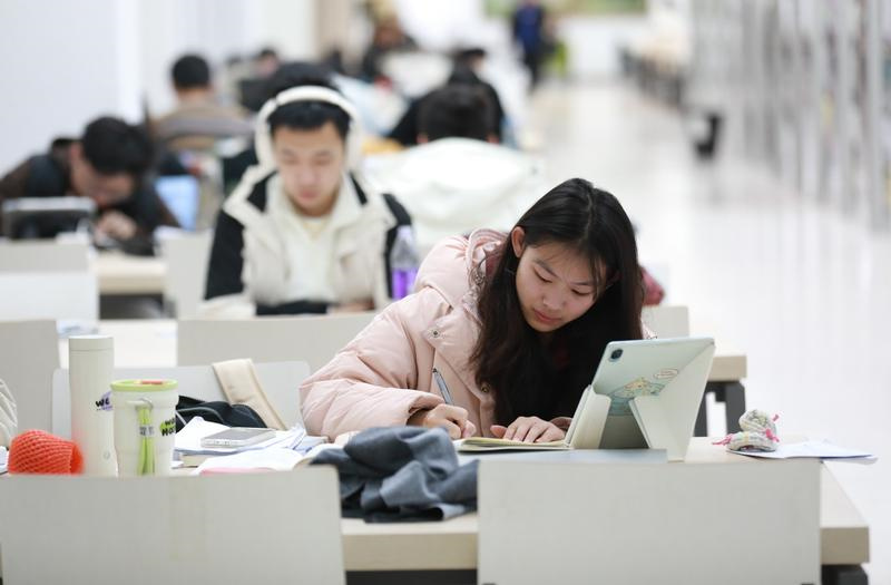 南京航空航天大学将军路校区自习教室、图书馆内,同学们正聚精会神、抓紧一切时间学习。图书馆大厅里的考研祝福墙上,满载着考生和学弟学妹的祝福。“拼尽全力不留遗憾,走向理想的彼岸”“一言为定!上岸!”“一念既定,万山无阻!”“学姐学长加油,一定上岸!”