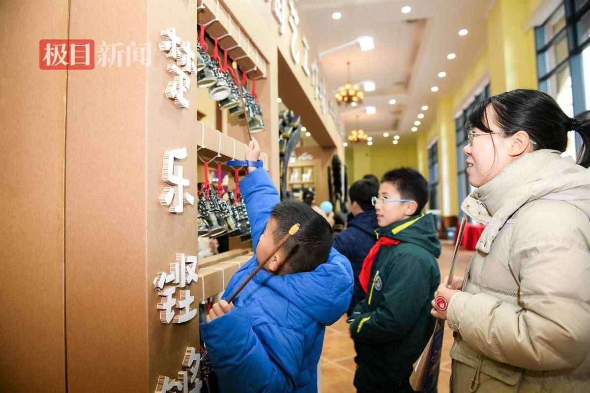 光谷实验小学的孩子们做了陶瓷编钟,很多参观者试着演奏
