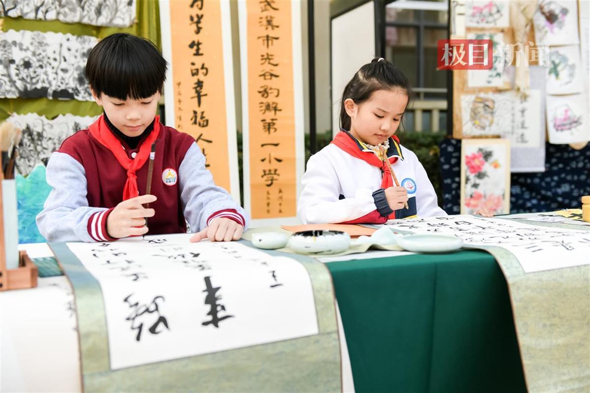 “美育要连接生活,连接社会,才能深入人心。所以一开始计划办美育活动展时,我们就决定开门办,让更多市民参与到校园美育中来,看到我们的成果,也帮助我们进步。”武汉东湖高新区教育发展研究院院长王开桥说,11月,各校都举办了“学校美育活动展示月”,大量优秀作品从中涌现,经区里多次选拔,最终14所学校的艺术工作坊入选,构筑了此次展会的14方个性鲜明的艺术天地;另有40位书法小达人现场挥毫,为自己的学校书写校名。