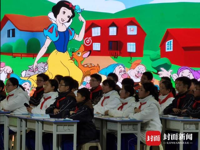 白雪公主和七个小矮人,通过大屏幕走进课堂,现场遇到的算术难题,需要学生们帮忙解答。随后举行的AI课堂展示,精彩纷呈。