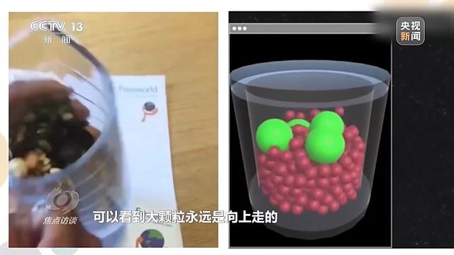 中国科学院物理研究所研究员厚美瑛:在地面上,在实验室做,可以看到大颗粒永远向上走的;可是我们发现在不同低重力水平下,振动强度小的时候,可以看到大颗粒是向下走,不是向上走,这个发现是第一次。