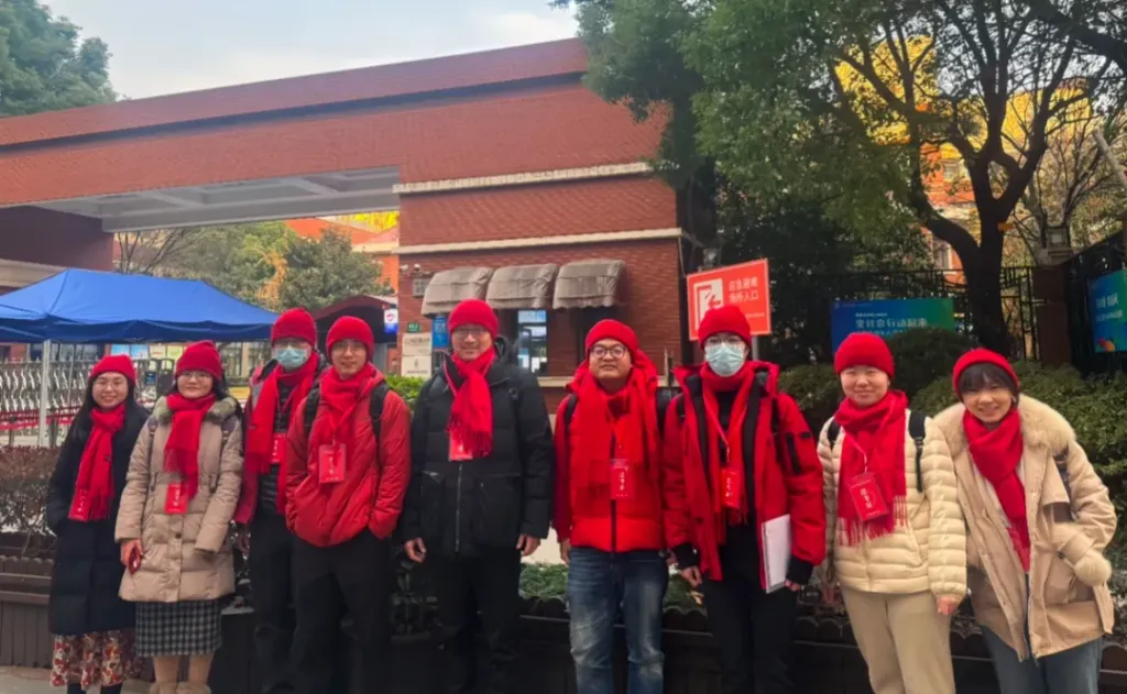 上午7点,上海中学的送考老师们已经戴好红帽子和红围巾,守在南洋模范中学的考点门口。