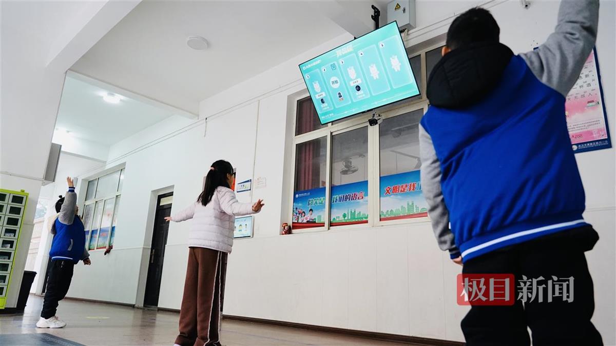 “昨天我一分钟跳了30个,今天要跳到35个!”2025年1月3日,武汉市黄陂区前川一小第一节课刚结束,六年级(4)班小陈就跑到学校增设的AI运动吧里进行开合跳训练,“全校学生的体测数据都在屏幕上,我算中游,今天一定要完成自己的小目标。”说着,小陈便开始了训练。