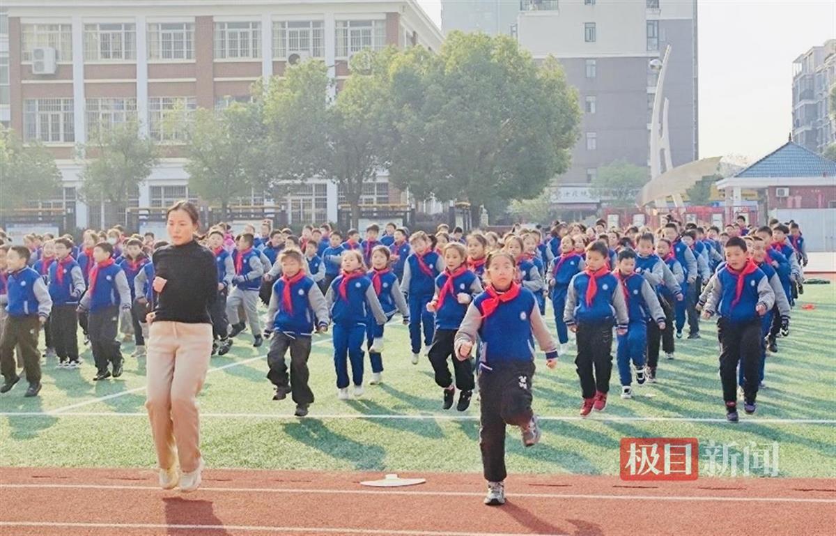 “下午的20分钟大课间安排在课后服务之前,其中5分钟的课桌舞大律动可以迅速唤醒活力;随后还有10分钟户外远眺,缓解了用眼疲劳。三个大课间全员参与,绝不能有任何一名学生在这场成长的奔跑中掉队。课后服务时间里,则为了满足不同学生的多元兴趣。”该校体育组组长程晓弟介绍,从一年级开始,学生们就有机会参与到篮球、足球、跳绳等运动项目中,早早开启体育之旅。随着年级的升高,到了三年级,学生便拥有了更丰富的选择。