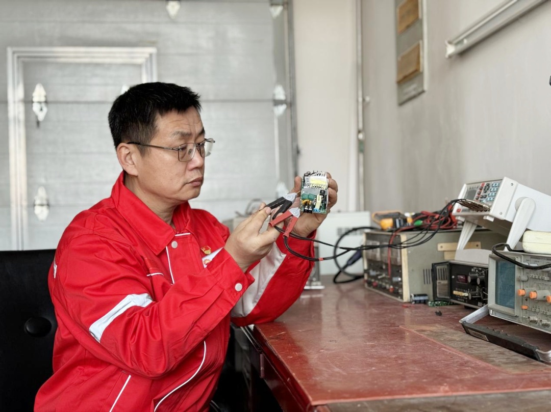 挑战难关,追求极致,闯出增效“新路”。2008年是他革新的第一次尝试,解决中转站高压进线所跌落式熔断器“缺相”难发现的问题。这个问题极易造成电机烧毁,严重时会因变压器损坏,导致中转站“心跳骤停”。为了攻克这个难题,他钻研专业书籍,虚心向老师傅求教,终于有了从低压侧电压入手的灵感。随后,他开始了自己的第一次革新。他用捡来的小灯泡、电路板等报废原件,“混搭”制作了“站、库电源进线缺相保护报警装置”。这项创新斩获了当年厂技术革新二等奖,开启了李雪涛的技术革新之旅。