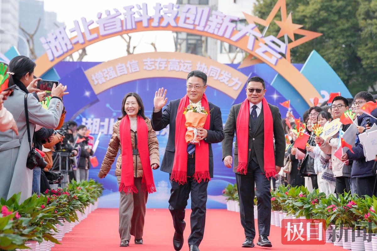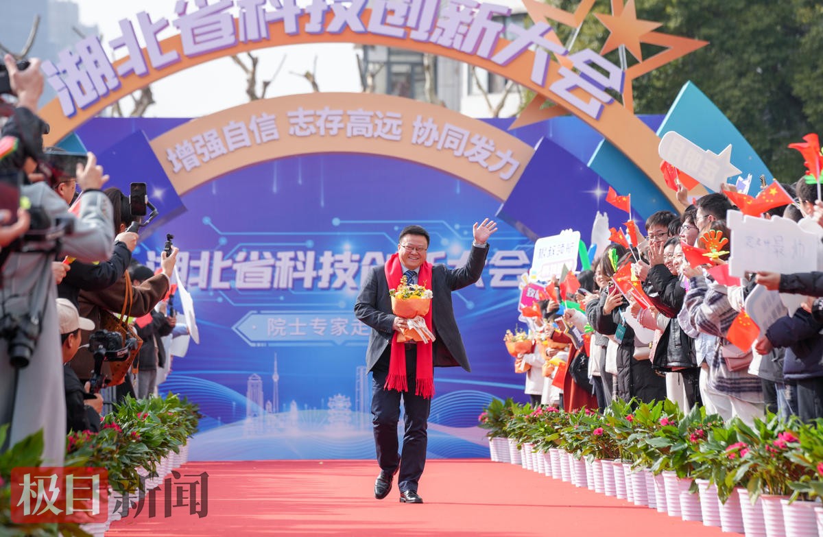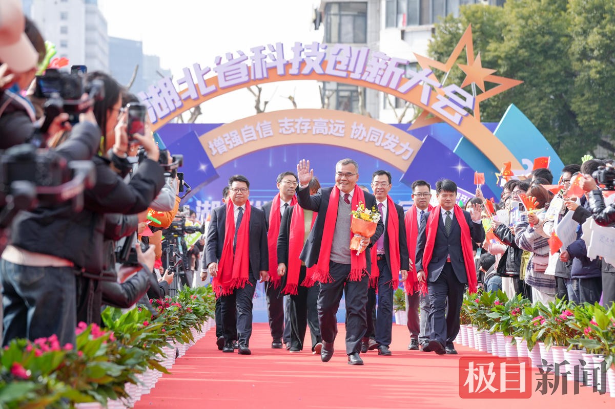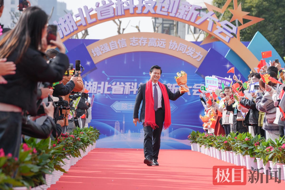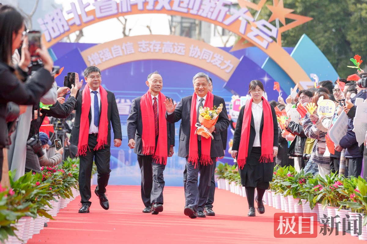 1月6日,2025年湖北省科技创新大会在武汉洪山礼堂拉开序幕。会前,在洪山礼堂外,院士专家走红毯活动是每年科技创新大会最为激动人心的时刻,今年科学家走红毯活动迎来了第六个年头。活动现场,上百米长的红毯从洪山路的一侧一直延伸到礼堂内。