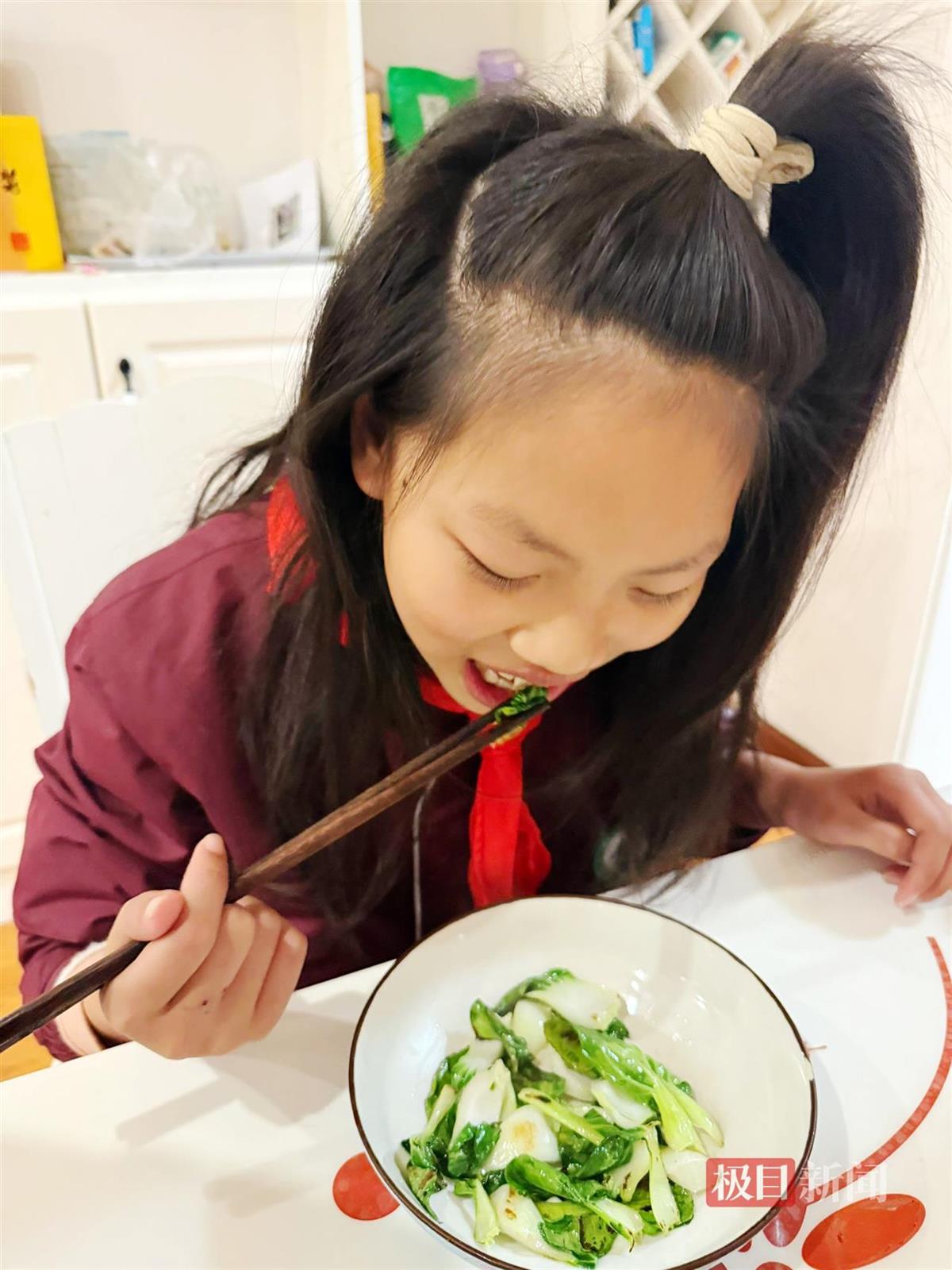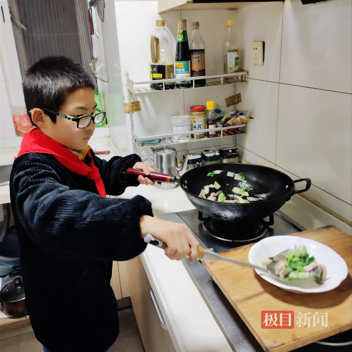 1月3日晚,武汉市光谷第十五小学(下文简称“光谷十五小”)510班学生王帅博给家人做了道“蘑菇炒小白菜”,收获赞声一片:“这白菜甜,好吃!”