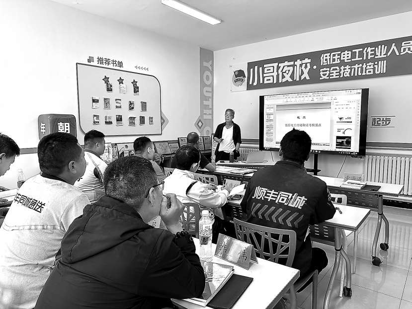 朝阳已举办的“小哥电工班”吸引了许多小哥来听课。