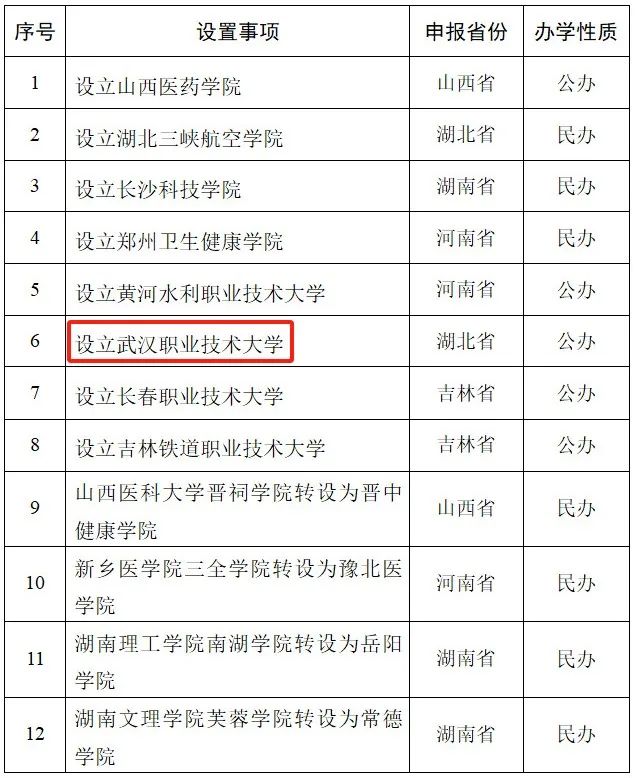 拟同意设立武汉职业技术大学,