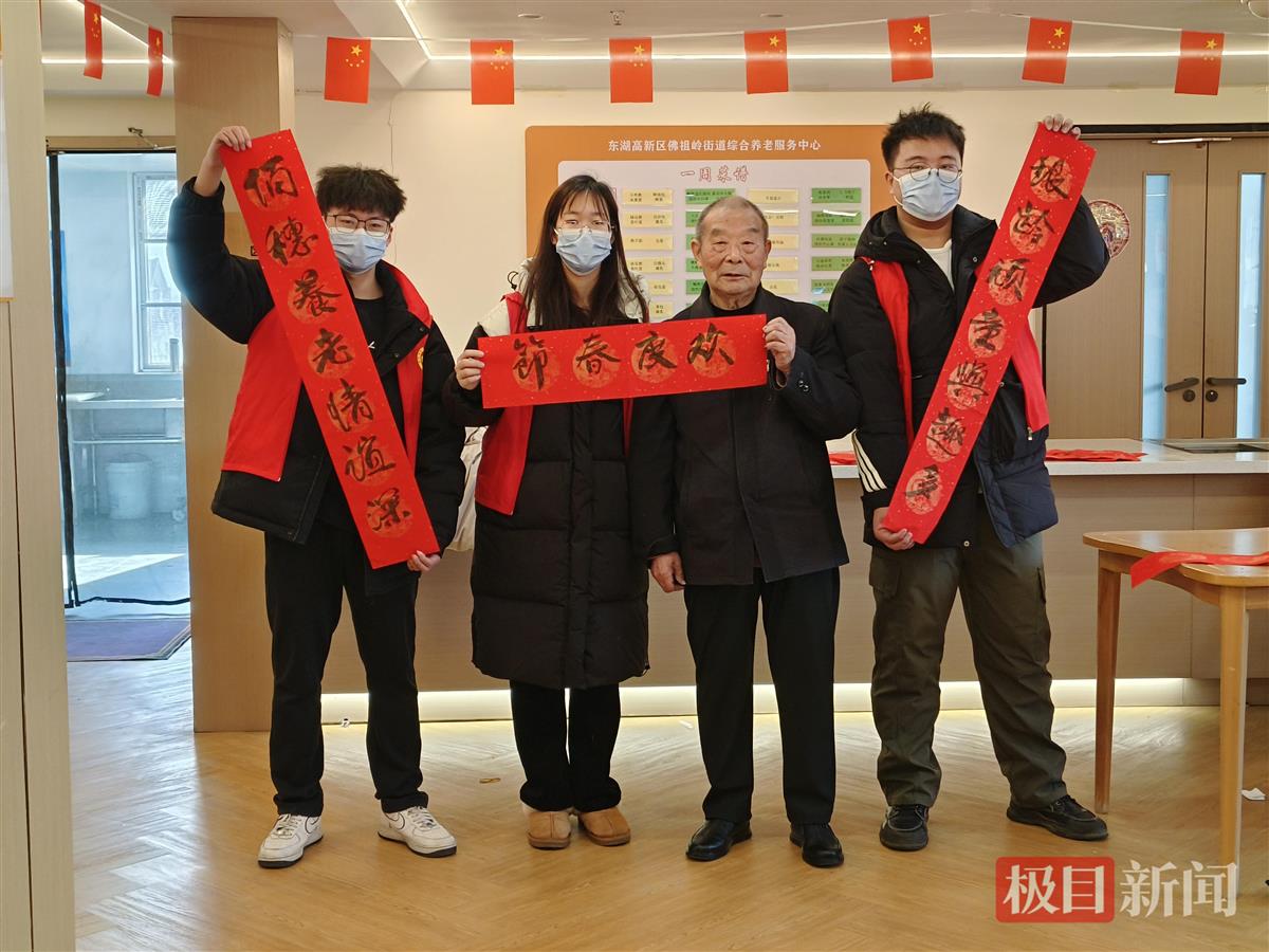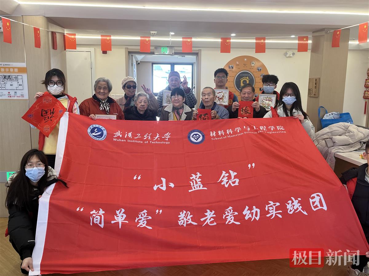 在农历新年即将到来之际,武汉工程大学电气信息学院、材料科学与工程学院的学生志愿者分别走进社区、养老院,为老年人们送去年味十足的温暖和关怀。