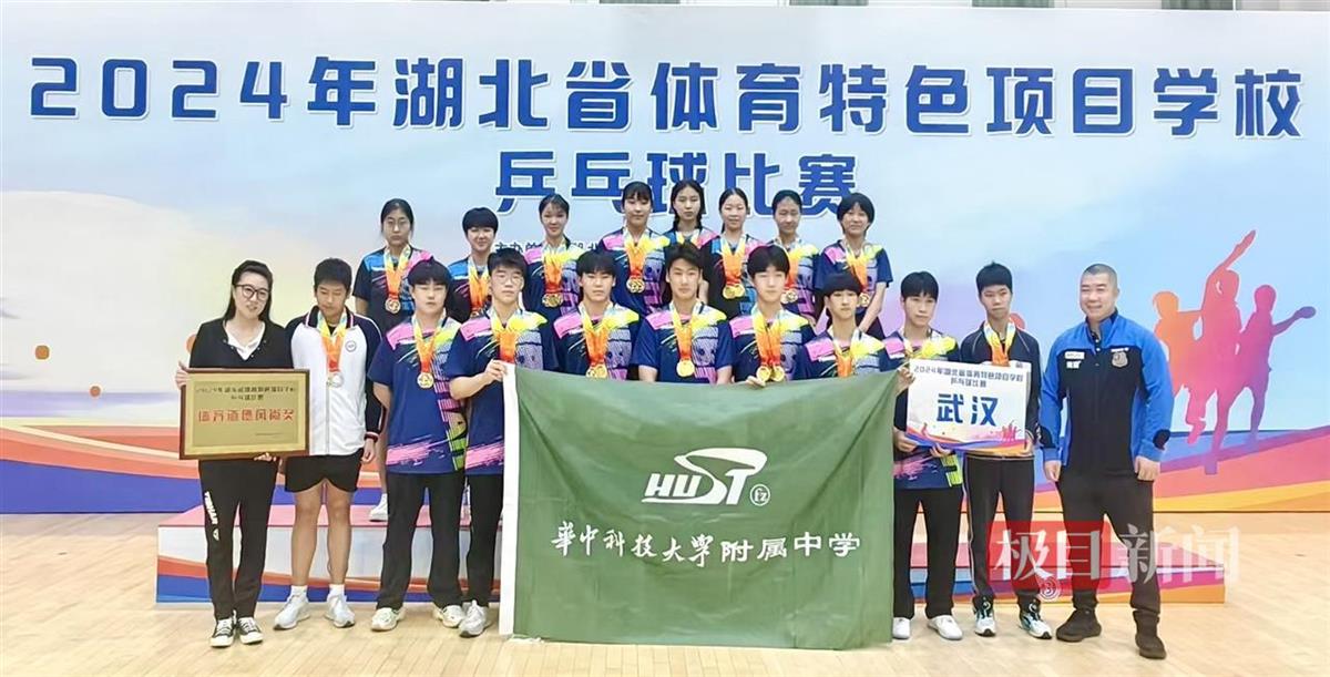 2024年10月,华科附中乒乓球队代表武汉市参加2024年湖北省体育特色项目学校乒乓球比赛,包揽初中组、高中组全部比赛的14项冠军