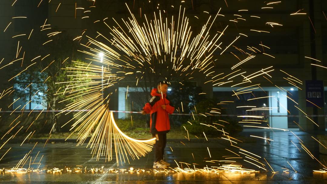 “这是我们高二学过的知识,但这样的现场表演感观更强,太精彩了!祝愿大家新年快乐、红红火火,也希望我们的梦想像这铁花一样绚丽绽放。”一名同学兴奋地说道。打铁花,又称“打花”“铁骊花”或“打铁柳”,最早用于民间五门工匠举行开业庆祝,后来民间在还愿、升迁、嫁娶、新宅奠基、祝寿、金榜题名、新业开张等喜庆活动时也常举行打铁花以示祝贺。2008年,打铁花被录入第二批国家级非物质文化遗产代表性项目名录。