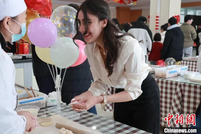 来自蒙古国的留学生婉郡分享说,这是她第一次留在学校过中国春节,她对包饺子很感兴趣,还尝试用毛笔写春联,感受浓浓的中国年味。“中国春节很有意思,到处都是红色,充满了热情和喜庆,而且这里的小吃不仅味道好,造型也都很有趣。”