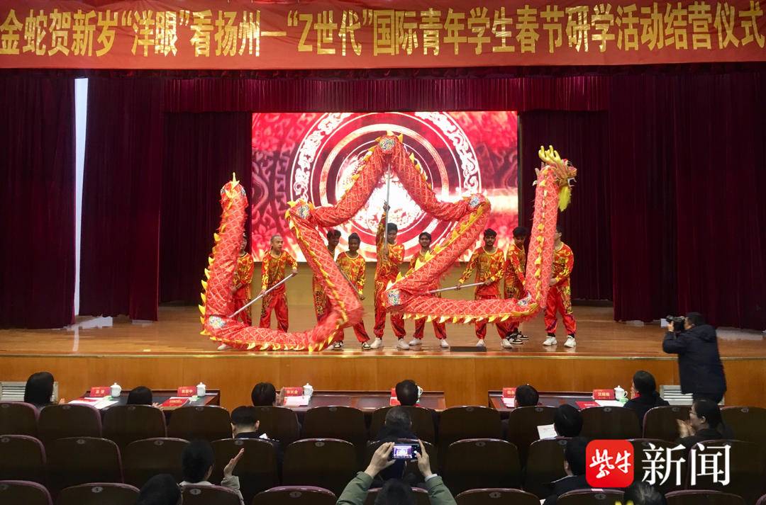 1月24日下午,“金蛇贺新岁,‘洋眼’看‘扬州’”——“Z世代”国际青年学生春节研学活动,在扬州工业职业技术学院结营。中国教育国际交流协会中外合作办学分会理事长、教育部国际合作与交流司原副司长方军,扬州市委常委、宣传部部长张长金,扬州工业职业技术学院校长倪永宏等,和来自多个国家的莘莘学子们,济济一堂,交流研学感受,共同迎接中国最重要的传统节日春节。