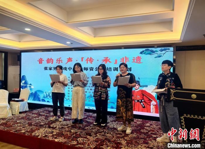 “一位班主任跟我说,他三年级的儿子走路洗澡都会唱上一段阳戏,有时候还会边唱边跳操”,参加过培训的张家界市永定区澧滨小学一级教师田爱英告诉记者,虽说孩子们现在接触的现代艺术形式比较多,但其实他们也会被传统文化所吸引。阳戏是本地剧种,有着独特魅力,她希望这种非遗传承活动能一直做下去。
