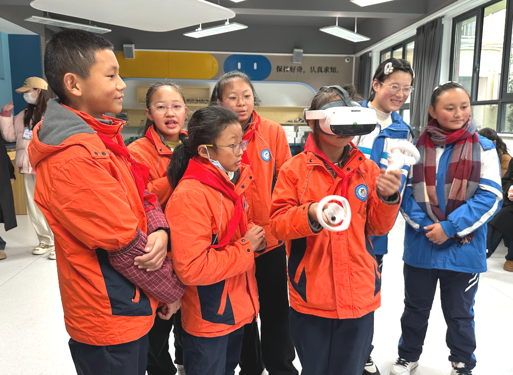 2024年12月,丹巴县的20名学生开启了成都研学之旅。在电子科技大学附属实验小学,丹巴的同学们参加了信息科技文化活动月开幕式,体验了“技术点亮课堂”的创客VR设备,学生们在VR空间中观察宇宙、制作3D立体作品、做化学小实验,感受科技创新带来的新奇体验,激发了他们对科技的兴趣;在成都七中英才学校,丹巴的同学们与该校学生一起上课、一起吃午餐,不仅增进了两地学生的友谊,也让丹巴学生们体验了不同的教学风格与学习方法,为未来的学习规划提供参考。
