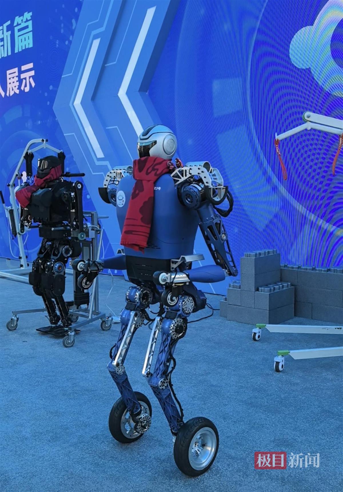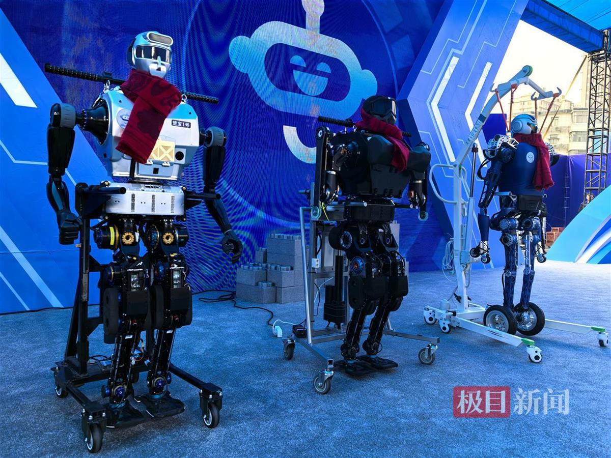 楚宝3号则踩着“风火轮”快速入场,行进时可以下蹲,它还现场表演了2轮变4轮,通过障碍物,随后还恢复成2轮直立状态。研发团队负责人黄强教授介绍,“楚宝”系列人形机器人未来主要面向公共安全、特种作业,如边防巡逻、消防救灾等领域,完成一些高风险、高难度的任务,以其独特优势为守护人民安全贡献力量。