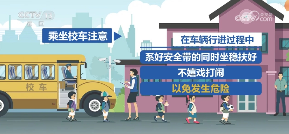 部分学生会选择乘坐校车上下学,建议同学们在车辆行进过程中系好安全带的同时坐稳扶好,不嬉戏打闹,以免发生危险。
