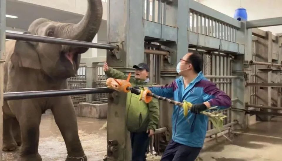 饲养员最基本的工作是饲和养,我发现我都做不太好。由于大象的特殊体形,组内都是壮汉,我是唯一的女性饲养员。大象每天吃得很多,需要大量的草料,装草料的是个非常大的桶,我拎不动。而给大象铲屎,需要用特制的巨型铲子,老饲养员们一下子可以铲起来一大坨,我拿铲子都费劲。