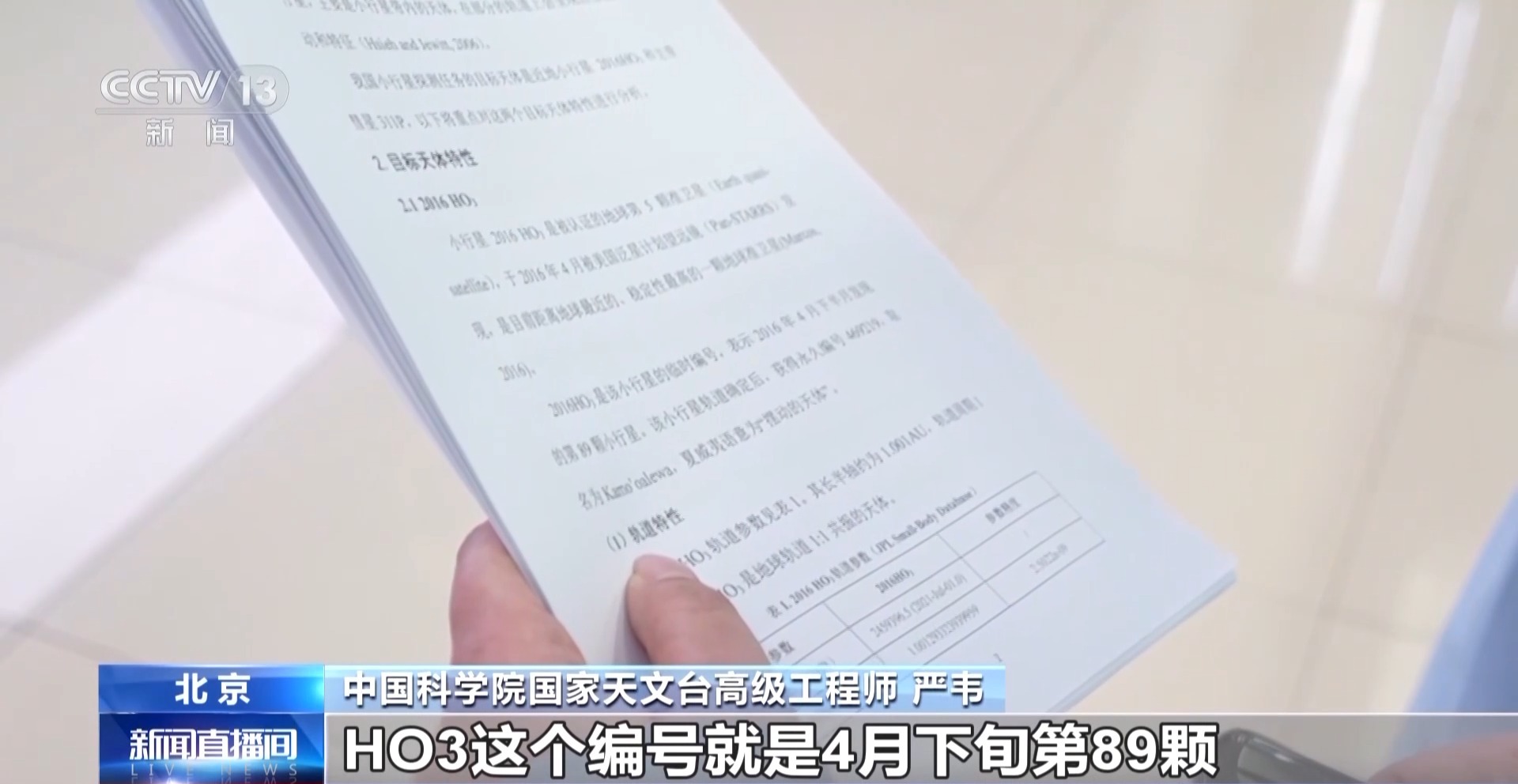 中国科学院国家天文台高级工程师严韦:2016HO3实际上是一个临时的编号,2016代表它是在2016年被发现,HO3代表它发现的月份和在这个月份上发现的顺序。