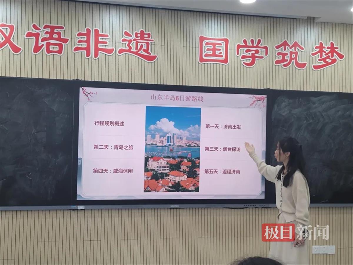 而为了让学生体验真实导游讲解场景,指导老师们还带领全体同学到黄鹤楼、东湖等武汉知名景点开展“移动课堂”,让学生在真实场景中磨炼应变能力。在听完导游的讲解后,各小组同学分别担任临时导游在真实游客面前模拟讲解。“刚开始的时候挺紧张的,像是考试,又像是真的在作导游讲解,除了身边的同学和老师,我们的周围围满了游客。”学生徐慧说,正是这样的现场试讲,让同学们在实战中练出胆子。