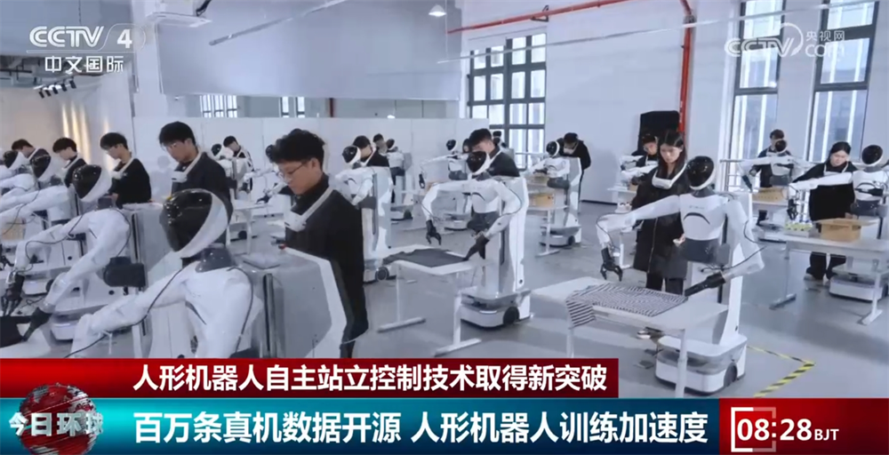 这里是一家人形机器人企业的数据采集中心,占地2000平方米的区域内,有100台人形机器人在做着各种各样的训练。目前,训练场已经对超过100万条的训练数据进行了开源。