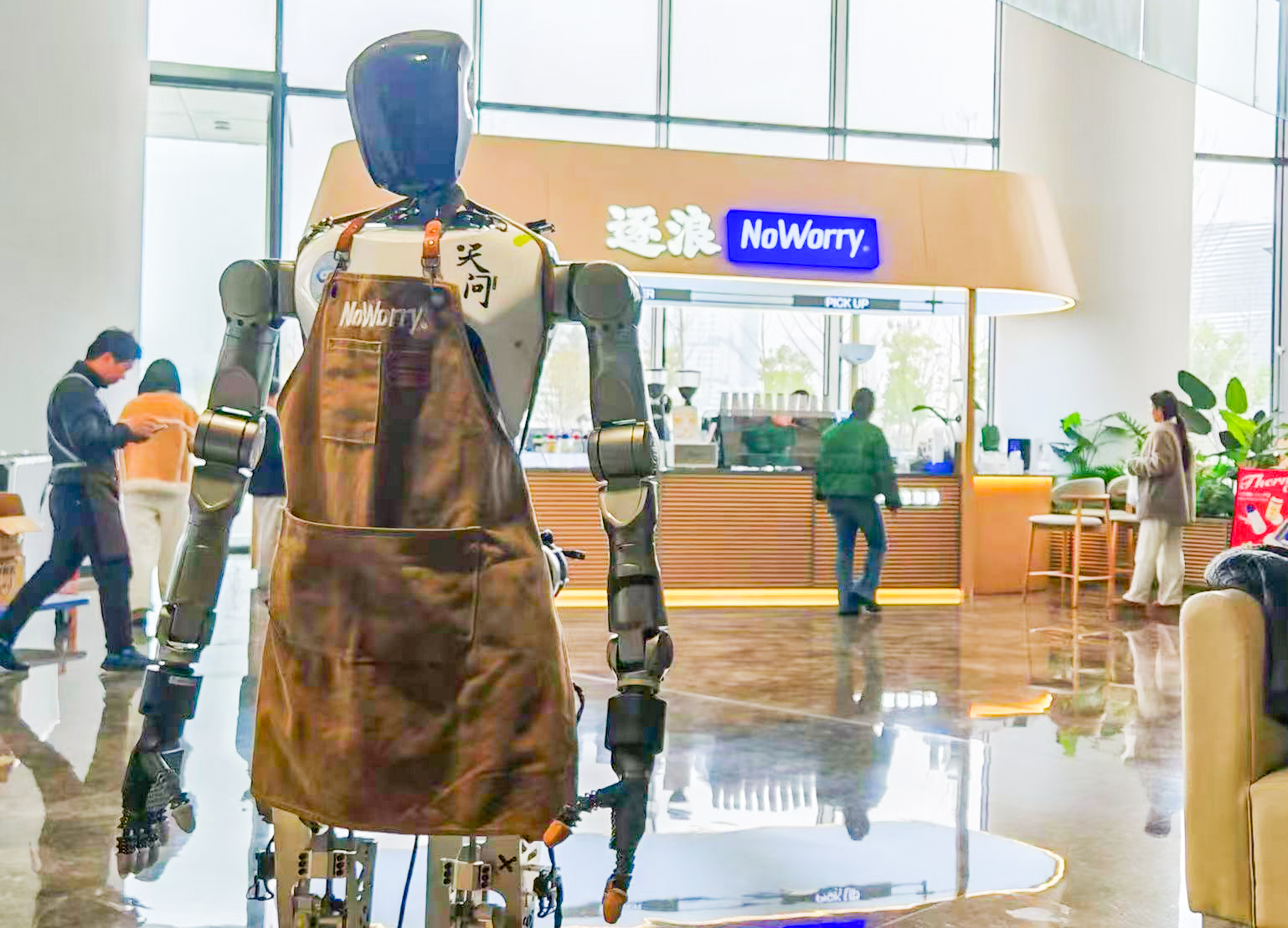 “天问”机器人到咖啡店“实习”(通讯员杨松桦供图)
