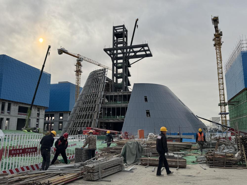 2月中,记者来到施工现场,焊枪的火花与塔吊的转动交织,700余名工人多工种并行作业。在连片的建筑中,一座宛如发射塔形状的建筑格外引人注意。