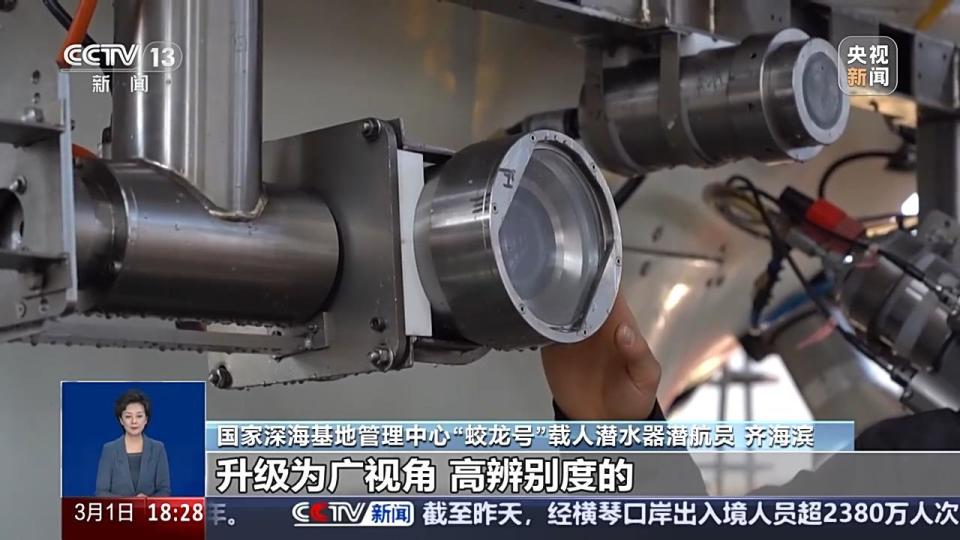 国家深海基地管理中心“蛟龙号”载人潜水器潜航员 齐海滨:我们会把“蛟龙号”现有的摄像设备升级为广视角、高辨别度的超高清视频设备,同时对“蛟龙号”的视频传输系统升级为更高效的视频传输系统,为我们后续的科学考察任务积累重要的视频数据。