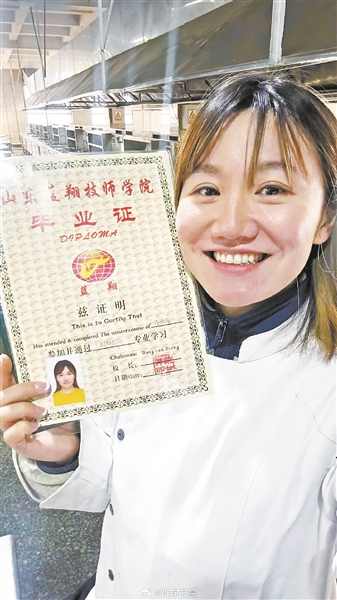 今年1月18日,在为期一个月的煎炸烹煮厨艺学习后,90后清华女硕士佟洁琼从山东蓝翔技师学院顺利毕业。毕业当天,她走出校门,收拾完行李后立刻北上,重新回到了北京。佟洁琼告诉记者,年前的一周时间,她早中晚都约了不同的朋友一起“恰饭”,几乎每天都呆在厨房为烹饪做准备。从挑选食材到烹制佳肴,佟洁琼都尽量亲力亲为,她手法熟练地颠勺、掌锅,那些普通的食材在她手中不断翻飞,瞬间变成一道道让人垂涎欲滴的佳肴,她也凭此技能成功“俘获”了一众朋友的胃。
