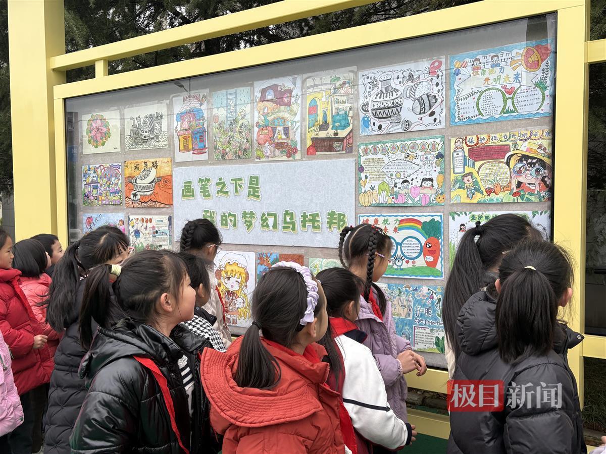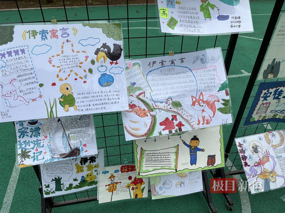 极目新闻记者看到,现场分为体育趣锻炼、劳动趣体验、剪纸生花等7个展示区,展品多为手绘画的模式。相关负责人介绍,学生可以选择自己感兴趣的板块进行实践创作,提交的作品多为手绘画,大家的积极性很高,甚至有学生创作了多幅作品。