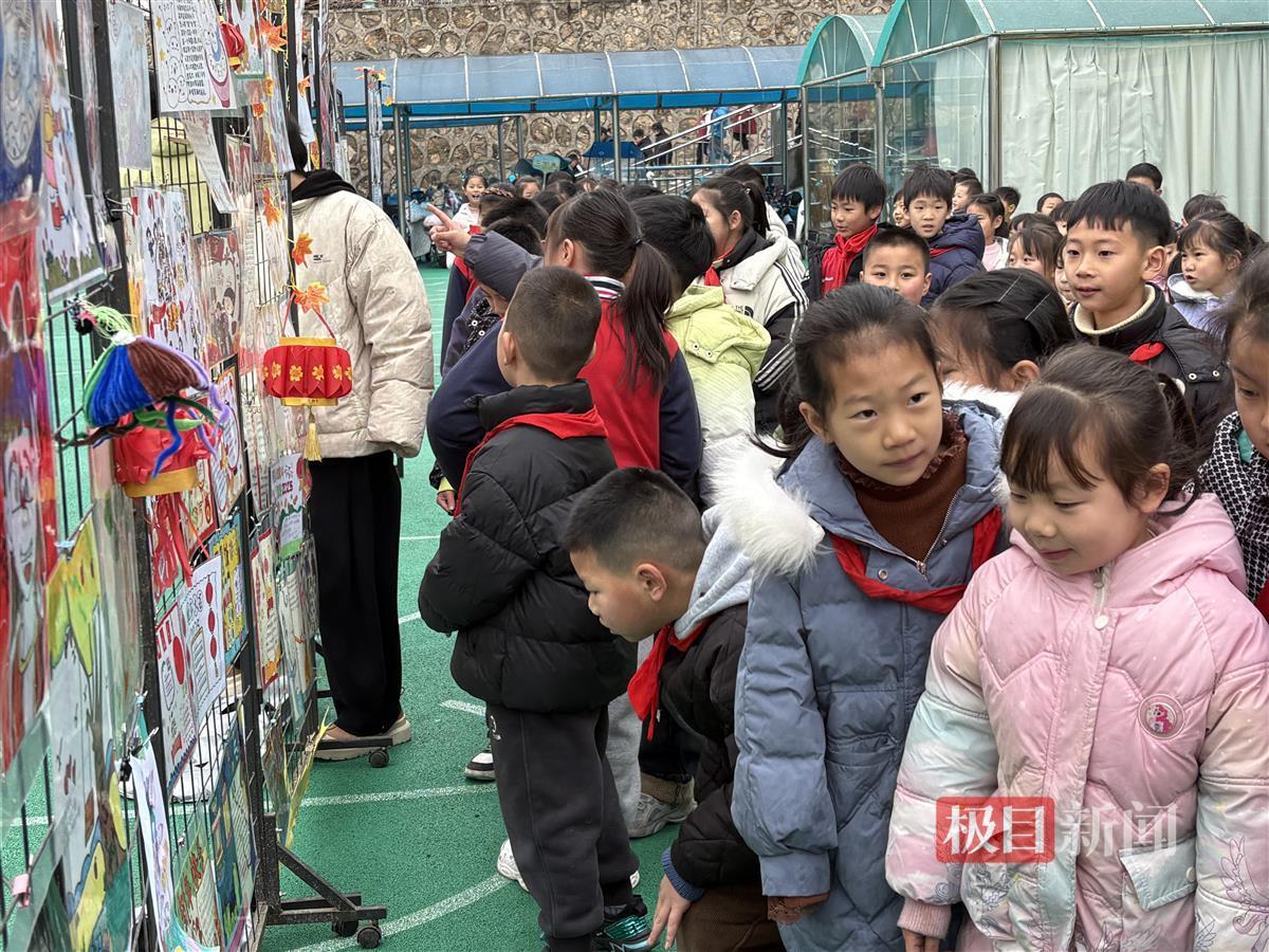 在课间,学校组织了不同年级的学生分批来到作业展进行参观,现场气氛热烈。“我最喜欢的作品是鱼型花灯,因为色彩很丰富,非常特别!”“我的作品是漆扇,是在我妈妈的帮助下完成的!”学生们围在展板前讨论着彼此的作品,分享着创作过程中的故事。