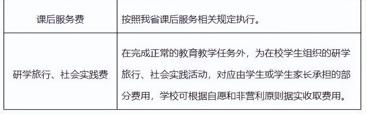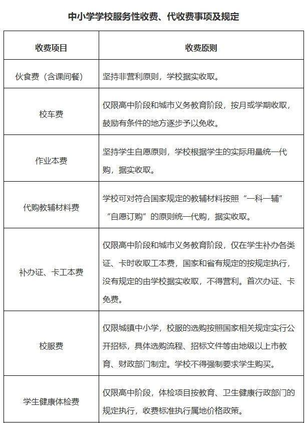 注:上述收费项目中,由学校为在校学生提供的,属于服务性收费;学校按规定通过引入第三方有偿为学生提供的,属于代收费。