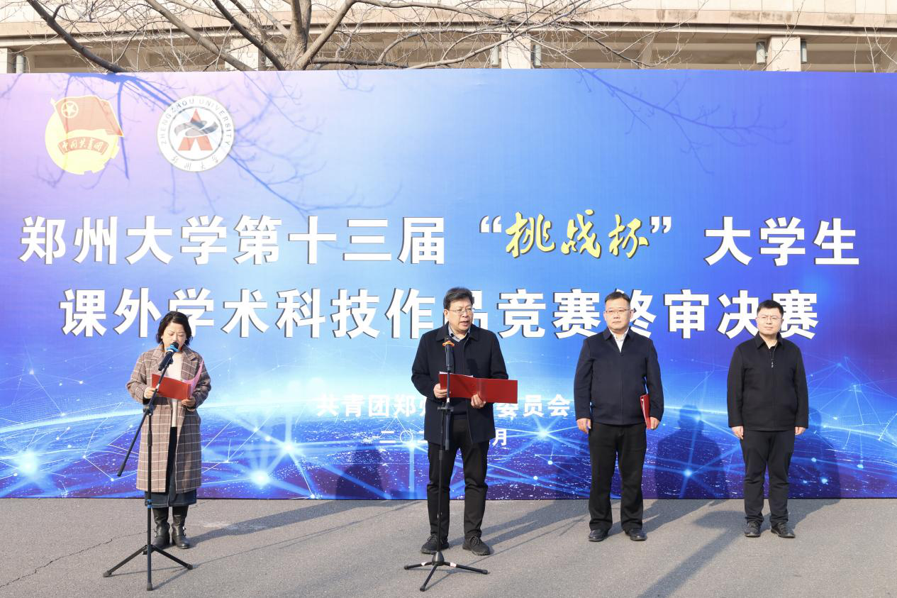 王利国致辞。他充分肯定了“挑战杯”大学生课外学术科技作品竞赛的重要意义,高度赞扬了全校师生参与科创竞赛的满腔热情。他对广大青年学子提出三点希望:一要志存高远、强化创新意识,秉持科技报国的崇高理想,聚焦国家战略需求,不断在科研领域探索前行,为国家的科技进步和经济发展贡献自己的智慧和力量;二是夯实基础、提升创新能力,不断创新思维和方法,通过不同学科领域知识、方法和思维的交流碰撞,培养跨学科思维和综合素养,为未来开展创新研究和创新实践奠定基础;三是注重协作、做实团队建设,在创新实践中发挥科技创新团队的主体作用,让每个成员在团队合作中发挥自身所长,使创新团队成为有利于优秀人才成长、有利于人才聚集的新高地。他希望大家坚守初心,保持激情,不畏艰难,用智慧和汗水追逐梦想,努力成为有理想、敢担当、能吃苦、肯奋斗的新时代好青年,在推进强国建设、民族复兴伟业中展现青春作为、彰显青春风采、贡献青春力量,奋力书写郑大青年为中国式现代化挺膺担当的绚丽篇章。