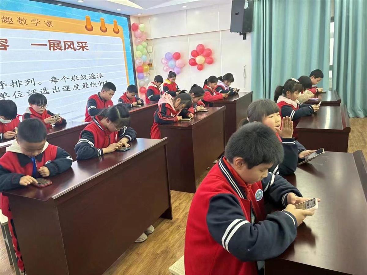 “算你精彩 数我最棒 ”个人口算挑战赛拉开活动帷幕。当答题卡分发至桌面的瞬间,屏幕上的沙漏开始倒计时,报告厅里只剩下笔尖摩挲纸张的沙沙声。孩子们伏案疾书,时而凝神思索,时而快速演算,完成作答后还会细致复查,展现出严谨认真的学习态度。