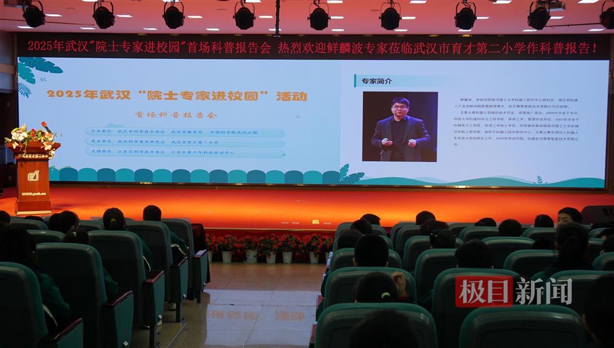 为弘扬科学精神,普及科学知识,激发青少年科学梦想,培养拔尖创新后备人才,3月14日下午,2025年武汉市首场“院士专家进校园”科普报告活动在武汉市育才第二小学举办,现场,师生代表近200人共同聆听报告。