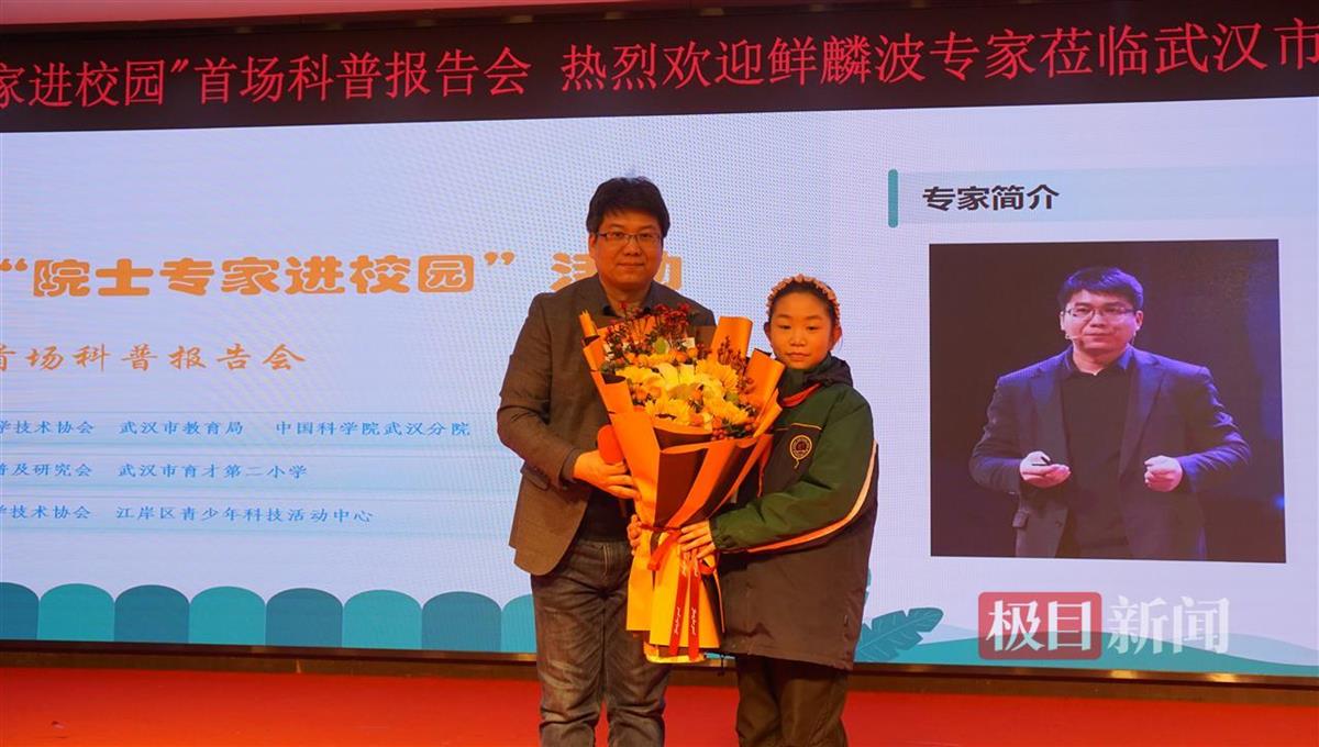 活动伊始,武汉市育才第二小学吴艳书记介绍了武汉市育才第二小学在青少年科技创新教育方面取得的优秀成果。她送给学生“好奇”“坚持”“担当”三把“科学金钥匙”,鼓励学生们持续探索、勇于创新。