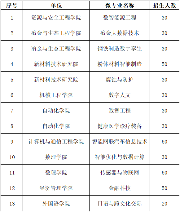 北京科技大学首批开设13个微专业、共招生480人。图/北京科技大学官方微信公众号