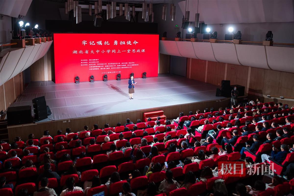 极目新闻记者观察到,这场思政课以学习贯彻总书记六次考察湖北的重要讲话精神为核心主线,层层递进、螺旋式上升,巧妙地将大中小学思政课进行了统筹策划与一体化设计。活动结束后,现场不少师生深受触动。“从小学的‘真善美’启蒙,到初中的‘社会责任’培养,再到高中的‘文化自信’塑造,中职的‘职业精神’发扬,高职专科的‘国家战略’对接,以及大学的‘科技创新引领’,我们看到了思政课一体化建设的生动实践。”华中师大一附中初中部教师董玉婷说。