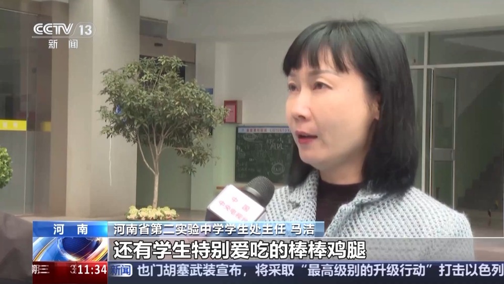 河南省第二实验中学学生处主任 马洁:像避风塘那种做法,我们会把面包糠或方便面碎少放一点,还有学生特别爱吃的棒棒鸡腿,少挂一些容易吸油的面糊或者面包糠,尽可能把油的含量降低一点。